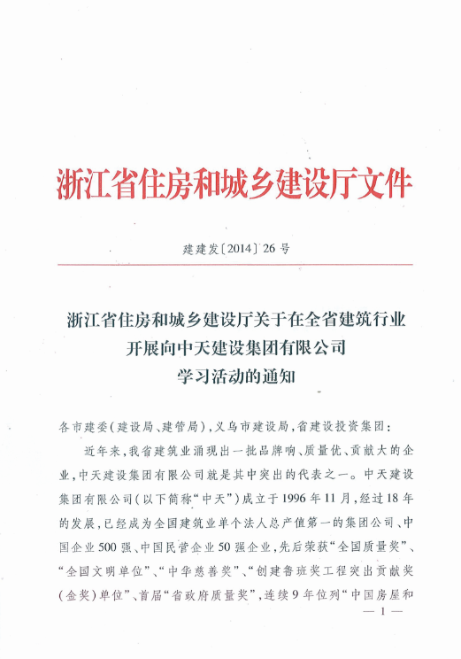 《浙江省住房和城乡建设厅关于在全省建筑行业开展向人生就是搏建设集团有限公司学习活动的通知》